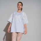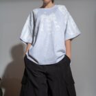 Ajuns în era 2.0, T-shirt-ul Ie este imprimat digital (print DTF) cu cate trei unitati pe fata și alte trei pe verso, rezultat în urma fotografierii unui fragment de cămașă românească veche, macro.